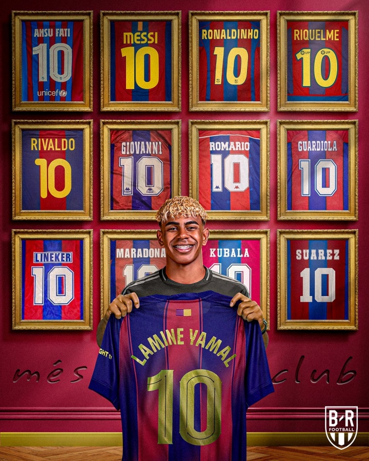 雅马尔接管了巴塞罗那的第10号:梅西 罗纳尔多 里瓦尔多 马拉多纳.